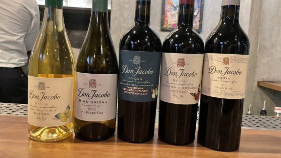 Os vinhos foram: - Don Jacobo Viura Ecológico 2021 - Don Jacobo Albariño Rías Baixas 2022 - Don Jacobo Vindimia Selecionada 2021 - Don Jacobo Crianza 2019 - Don Jacobo Reserva 2018