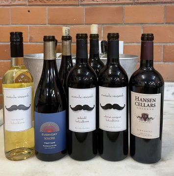 Os vinhos da noite foram: - Mustache Vineyards 2018 Moscato - Everyday Sonoma 2018 Pinot Noir - Mustache Vineyards 2018 Zinfandel - Mustache Vineyards 2019 Cabernet Sauvignon - Hansen Cellars Reserve 2017 Zinfandel