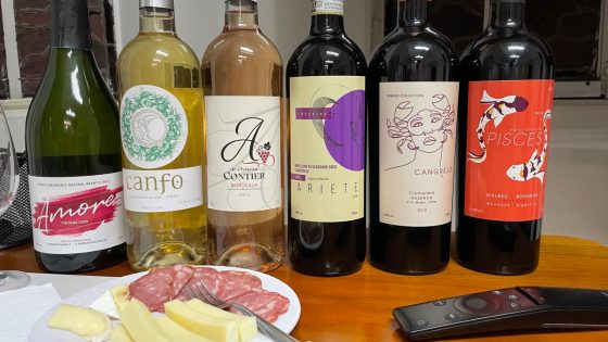 Os vinhos: 1 - Espumante Amore Brut Vintage | Brasil 2 - Canfo Sauvignon Blanc – Airén | Espanha 3 - A de Château Contier Rosé AOC Bordeaux | França 4 - Ariete Incontro Morellino di Scansano DOCG - Itália 5 - Cangrejo Carmenere Reserva - Chile 6 - Pisces Malbec Bonarda Reserva | Argentinha 7 - Quinta Do Portal Ruby | Portugal